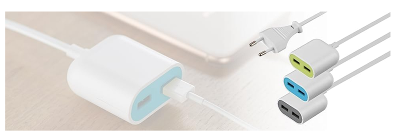 *Alargador de toma eléctrica a USB. Consigue toda la potencia de carga de la toma de corriente a tu cómodo alcance gracias al prolongador USB.