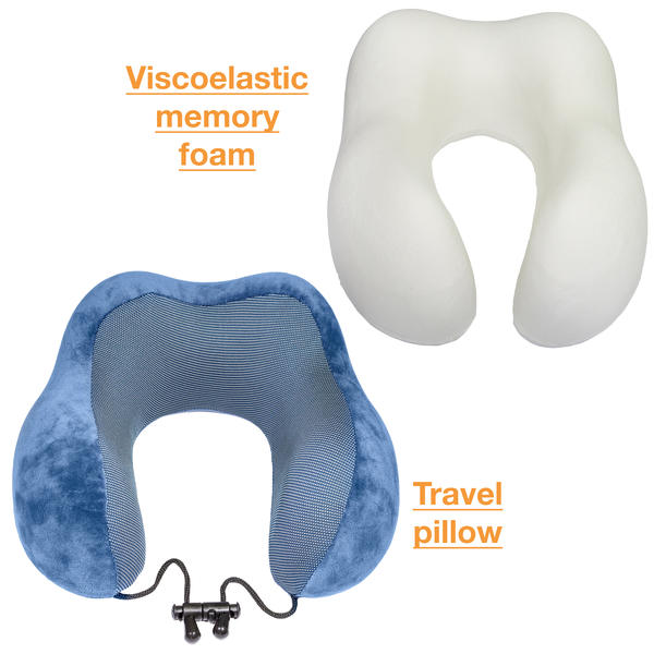 Almohada de Viaje Cervical Viscoelástica con Funda - Kit con Antifaz y Tapones para Dormir en Avión y Coche