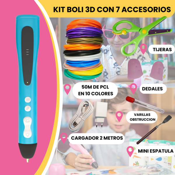 Boligrafo 3D para niños con +50M de PCL en 10 Colores, Plantillas de Dibujo y 5 Accesorios Extra