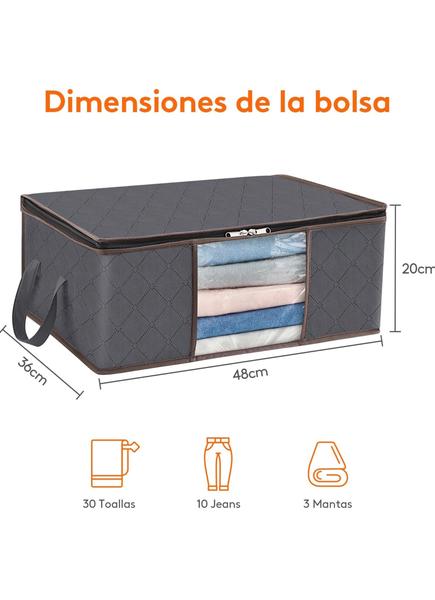 Son un pack de 3 bolsas de 35 litros de capacidad para guardar ropa, normalmente de temporada. Son de poliester.