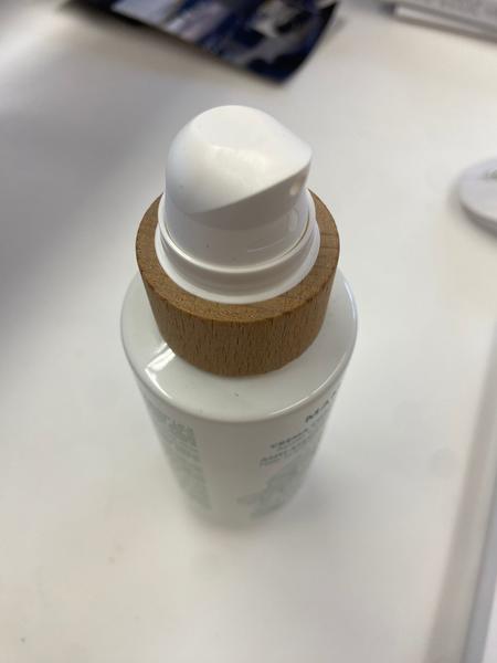 Bote de cristal serigrafiado con dispensador de alta calidad y rosca de madera.