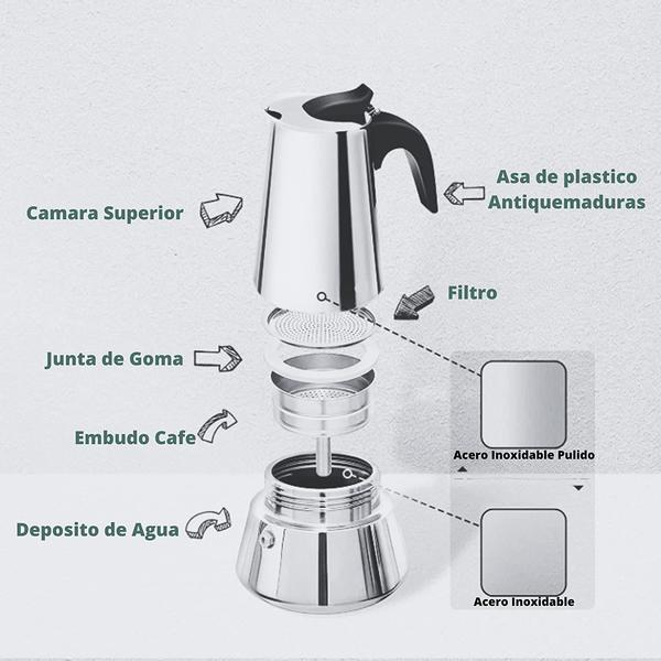 Cafetera Italiana De Acero Inoxidable 6 Tazas Inducción
