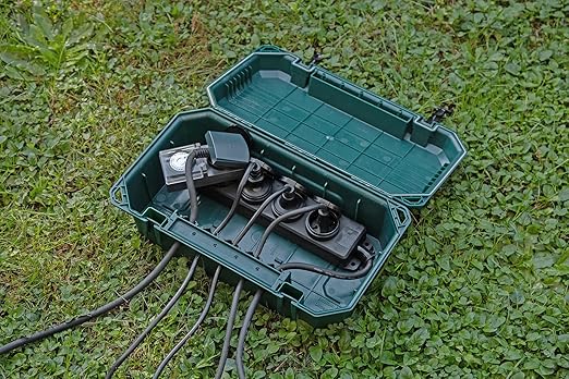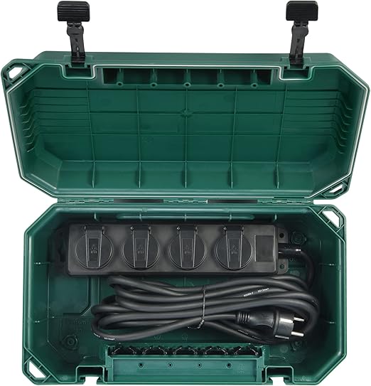 Electraline 300181 Caja de protección para conexiones eléctricas exteriores con protección IP54 con Regleta Base Multiple 4 tomas con Tapas IP44 Cable H05RR-F 3G1.5