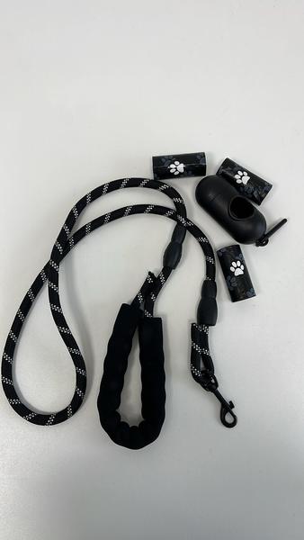 Correa Perro de 1.5m, 5m y Extensible con Mango Acolchado y Reflectante - Incluye 3 Bolsas para Caca y Dispensador - Duradera y Cómoda. Correa básica Perro pequeño, Mediano y Grande