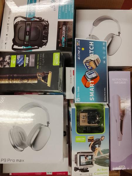 Todos los palets contienen mezcla de electrónica de alta demanda, smart watch, altavoces bluetooth, cascos bluetooth, masajeadores, cámaras wifi, cámaras deportivas, basculas inteligentes, ilumiinación, secadores de pelo, rizadores, gaming y mucho más