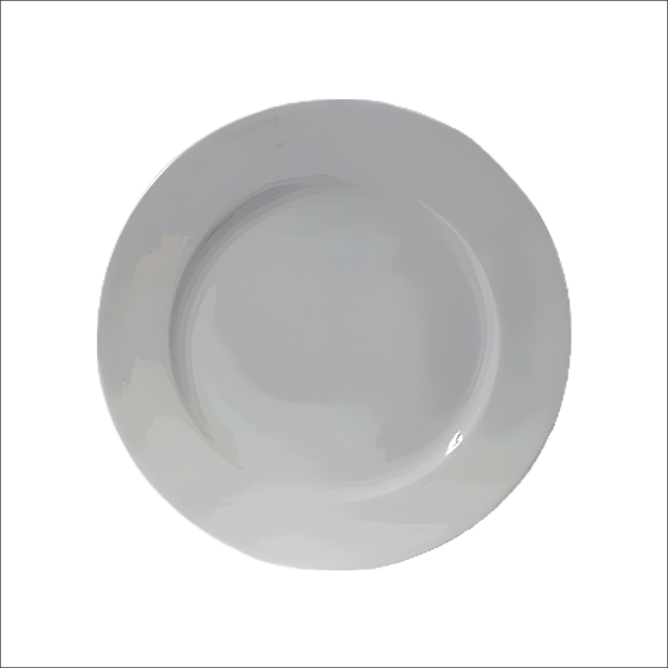 Plato de fine dining de 31 cm en color blanco, elaborado en material duradero, diseñado para servir platos con sofisticación y resguardo.