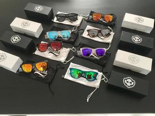 Gafas de sol con mas alta polarización. Lentes reforzados anti-rotura, montura ligera en policarbonato y terminación mate (sin brillo). Se liquida stock de 1.000 gafas en cajas de 10 uds.
