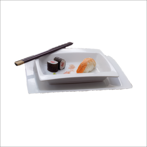 Bandeja Ming blanca de 25×8×1,5 cm, elaborada con material duradero, diseñada para servir ...