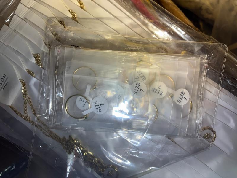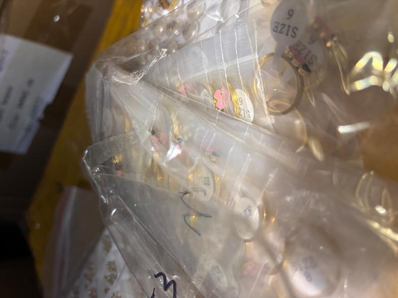 Anillos (Aprox. 300+ unidades): Surtido de anillos en tallas comerciales de alta demanda (tallas 6, 7, 8 y 9). Diseños modernos y resistentes.
