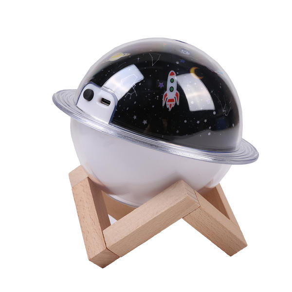 Humidificador de aire eléctrico ABS, difusor de aceites esenciales luz decorativa proyector para habitación. Características:• Material: plástico PVC y base de madera.• Lámpara proyector.• Humidificador.• Capacidad: 250 ml.• Esfera: Ø10,5 cm.• Anillo: Ø14 cm.• Cable USB.
