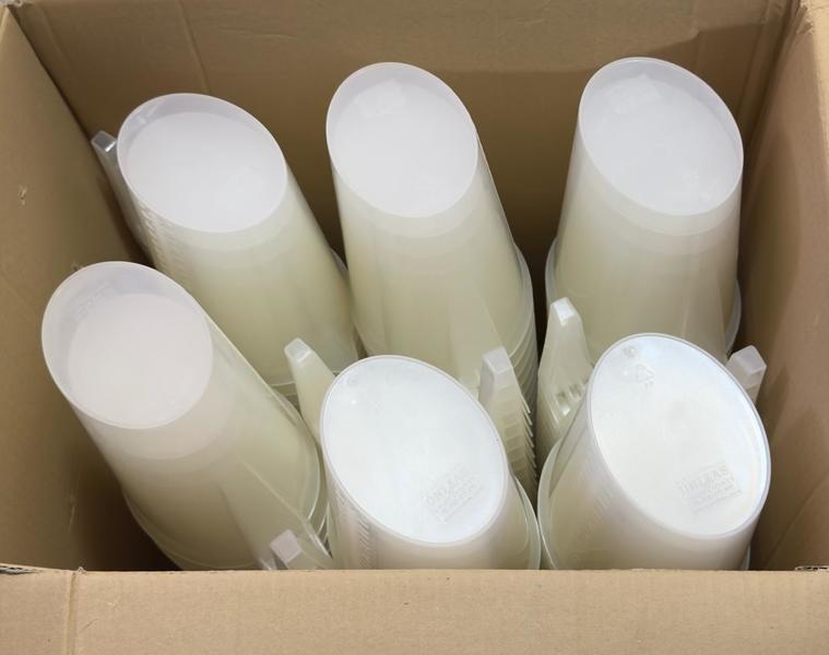 Hechas de PVC, las jarras dosificadoras son de color blanco semi-transparentes. Su diámetro mayor le proporcionan mayor estabilidad.