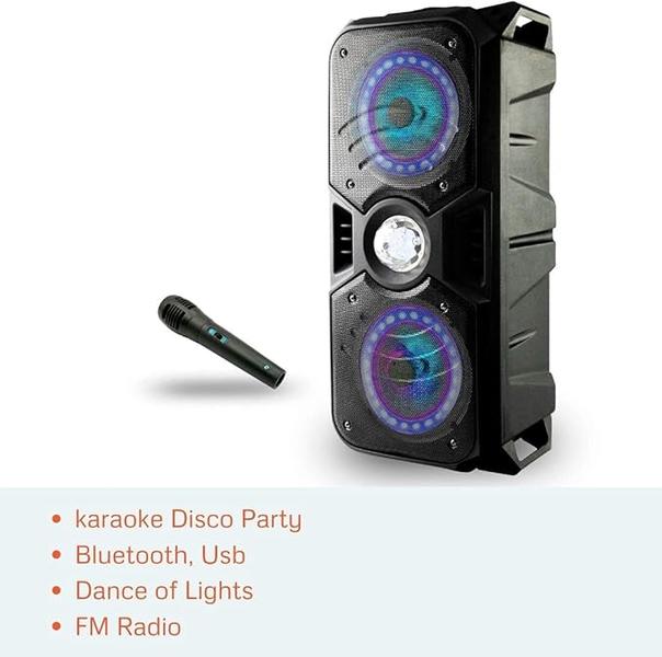 Lauson LLX33 Altavoz Bluetooth Portatil con Efecto de Luces Multicolores LED | Bluetooth Speaker con Lector USB MP3 | Altavoz Karaoke con Radio Integrada, Bateria 12 h Carga Incluye Micrófono