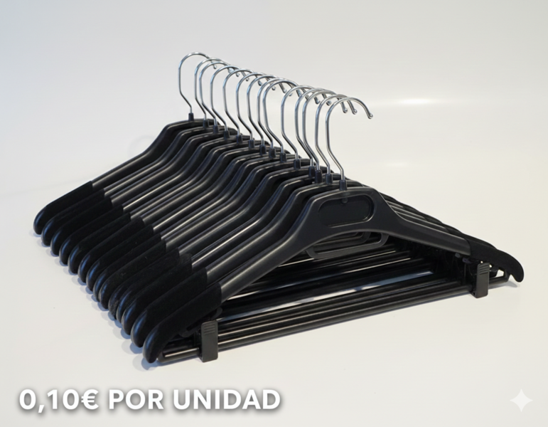 Lote de 900 perchas de plástico en color negro.