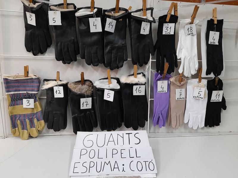 Por jubilacion en el negocio, se vende lote de 168 pares de guantes en polipiel, de espuma y de algodon; 85 pares de polipiel y 83 pares de espuma y algodon; en la foto, sobre cada guante, se muestra la cantidad que hay de cada modelo o color.
