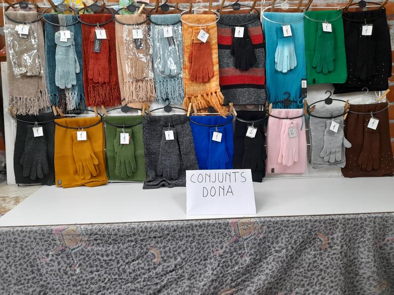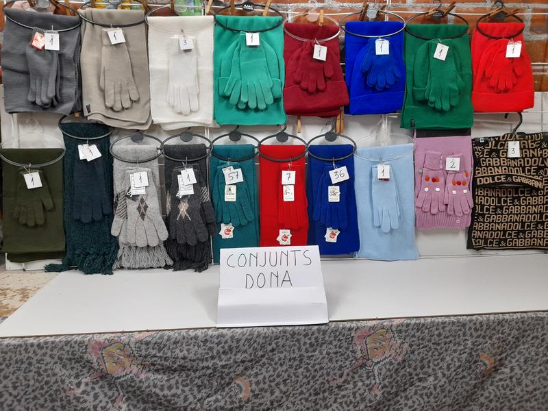 Por jubilacion en el negocio, se vende lote de 250 conjuntos de mujer, 209 de guantes+bufanda, y 41 de guantes+bufanda+gorro; en las fotos, sobre cada conjunto, se muestra la cantidad que hay de cada modelo o color.