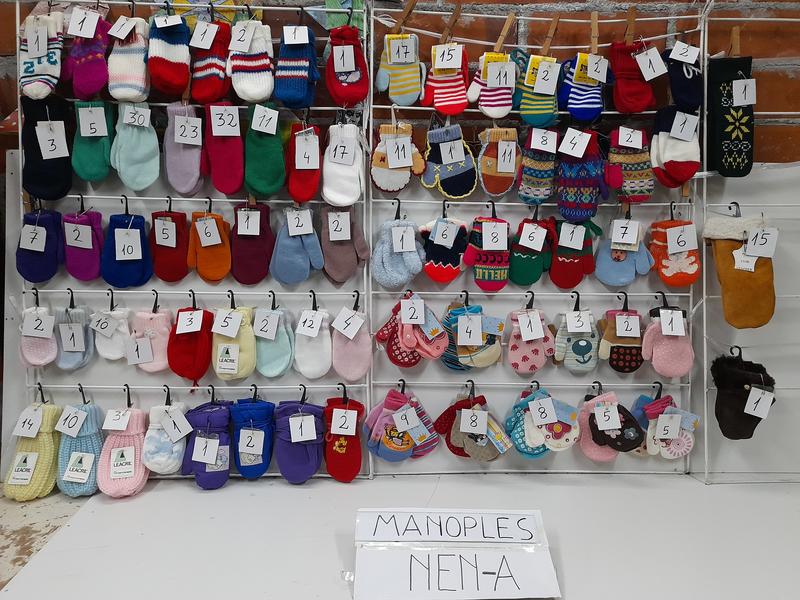 Por jubilacion en el negocio, se vende lote de 472 manoplas infantiles de punto, en distintas tallas y colores.En las fotos sobre cada manopla ,se muestra la cantidad que hay de cada modelo. Salen a 0.30 euros el par.