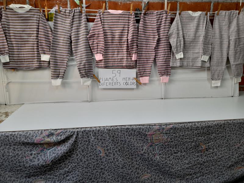 Por jubilacion en el negocio, se vende lote de 59 pijamas infantiles, acrilicos, en tres colores variados y en talla única, para una edad de 2 a 4 años, en la foto, sobre cada pijama , se muestra la cantidad que hay de cada color.