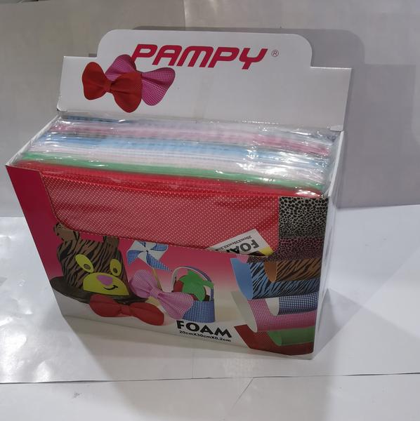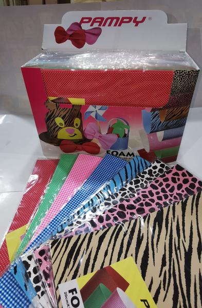 Expositor de láminas foam, el lote se compone de 6 expositores de 48 láminas de 30cm x 20cm y 2mm de grosor, en total hay 288 láminas (6x48) en colores surtidos. Cada lámina cuesta tan solo 0,19 ideal para colegios, guarderías, promociones, eventos, manualidades. Varios lotes disponibles.