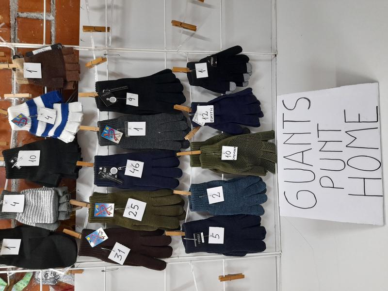Por jubilacion en el negocio, se vende lote de 688 pares de guantes de punto, 173 en tallas de hombre y 515 en tallas de mujer; en las fotos, sobre cada guante, se muestra la cantidad que hay de cada modelo o color.
