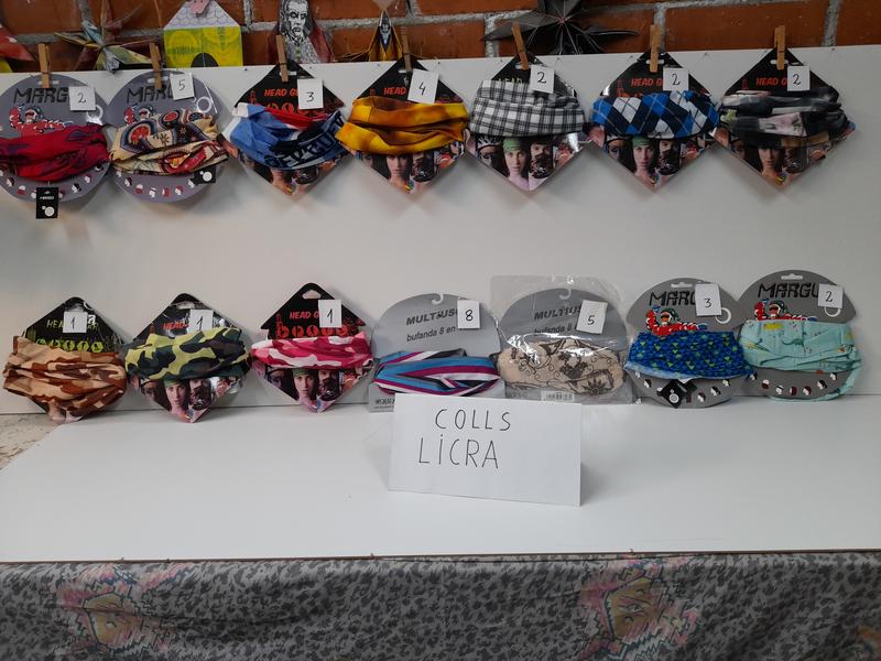 Por jubilacion en el negocio, se vende lote de 192 buff; 127 són de licra, 40 de algodon y 25 de licra con polar; en las fotos sobre cada buff se muestra la cantidad que hay de cada modelo.