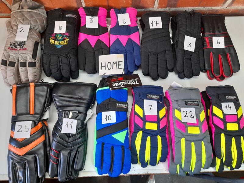 Por jubilacion en el negocio, se vende lote de guantes de sky vintage, compuesto de 338 guantes de tallas de hombre, 380 de tallas de mujer y 507 de tallas infantiles; en las fotos sobre cada guante se muestra la cantidad que hay de cada modelo. El lote sale por 1100 euros