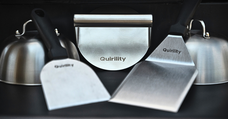 Lote de kits de acero inoxidable 304 para preparar smash burgers.