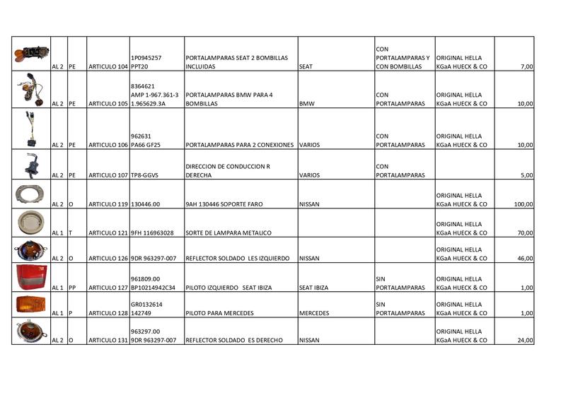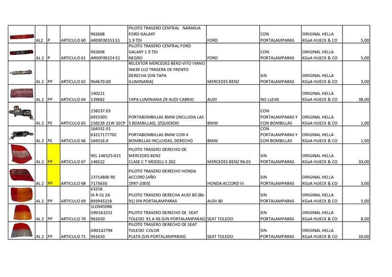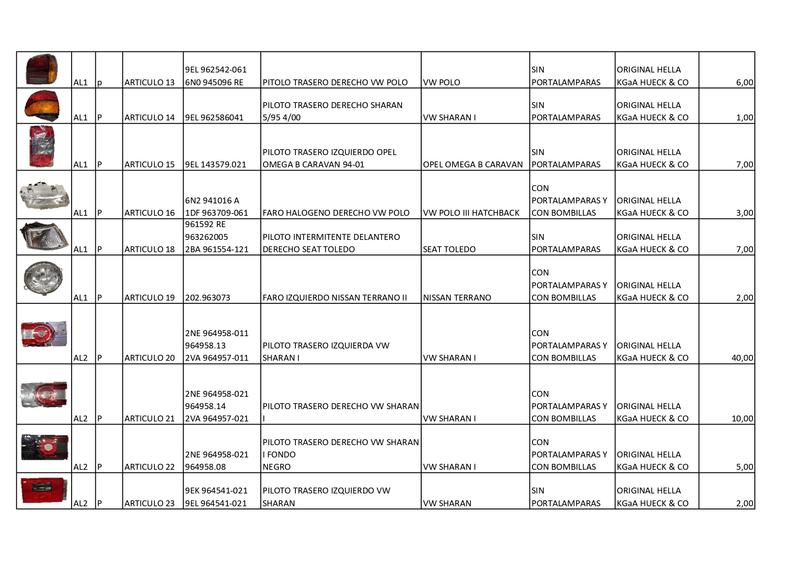 Oportunidad de comprar recambios de coches Hella en liquidacion a precio de remate. Vendemos ...
