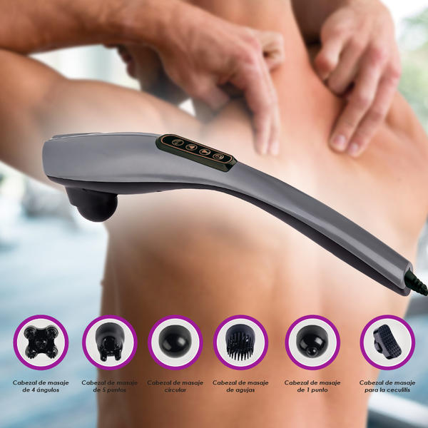 Masajeador eléctrico de mano con 6 cabezales de masaje, 10 marchas y 12 modos