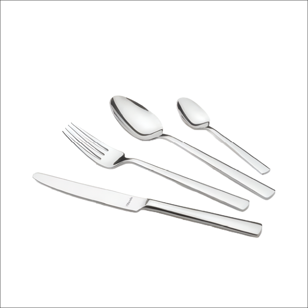 Tenedor de mesa contemporáneo, elaborado en acero inoxidable, diseñado para resistir un uso intensivo en el sector horeca, asegurando longevidad y resistencia.