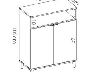 Mueble auxiliar de cocina o salón, dispone de 2 puertas y 4 estantes (2 de ellos visibles y 2 ocultos tras las puertas).