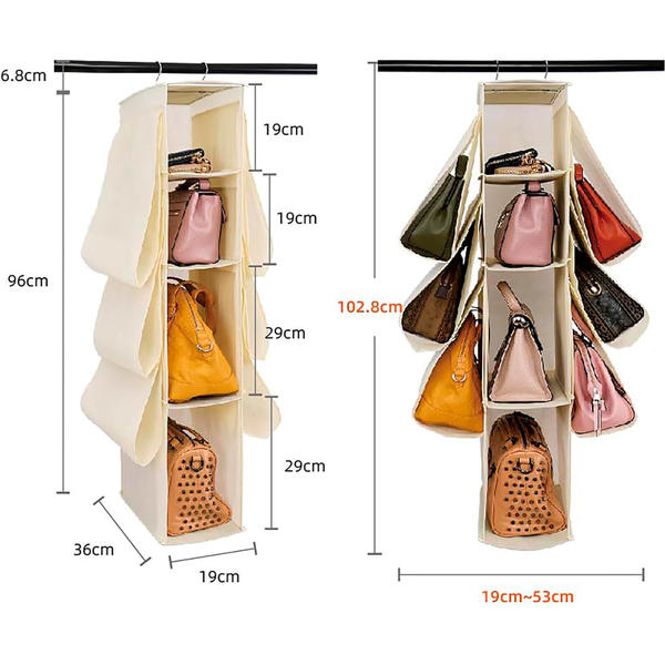 El organizador de armario para bolsos, zapatos y ropa es la solución perfecta para cualquiera que quiera mantener su guardarropa organizado y ordenado: sus múltiples compartimentos hacen que sea fácil encontrar lo que estás buscando, ya sea bolsos, zapatos o ropa.