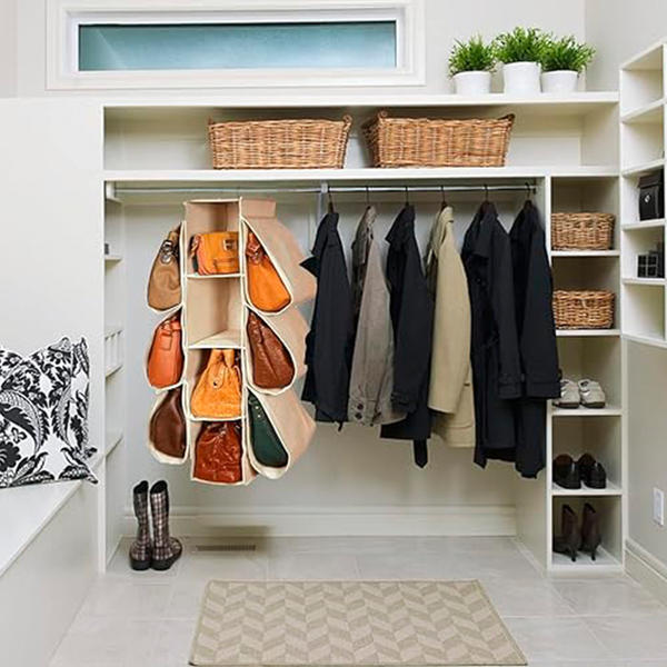 Mantenga convenientemente sus bolsos, carteras, bolsos de mano y otros artículos como mantas o sábanas ordenados y organizados con el organizador colgante de 10 bolsillos, creando fácilmente espacio de almacenamiento y haciendo que su armario esté libre de desorden.