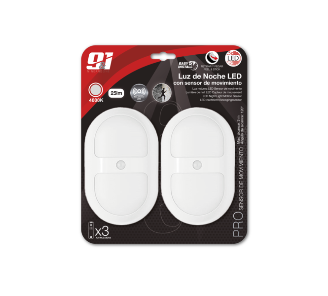 PACK 2 LUCES DE NOCHE LED OVALADA CON SENSOR 0,5W 25lm 4000K