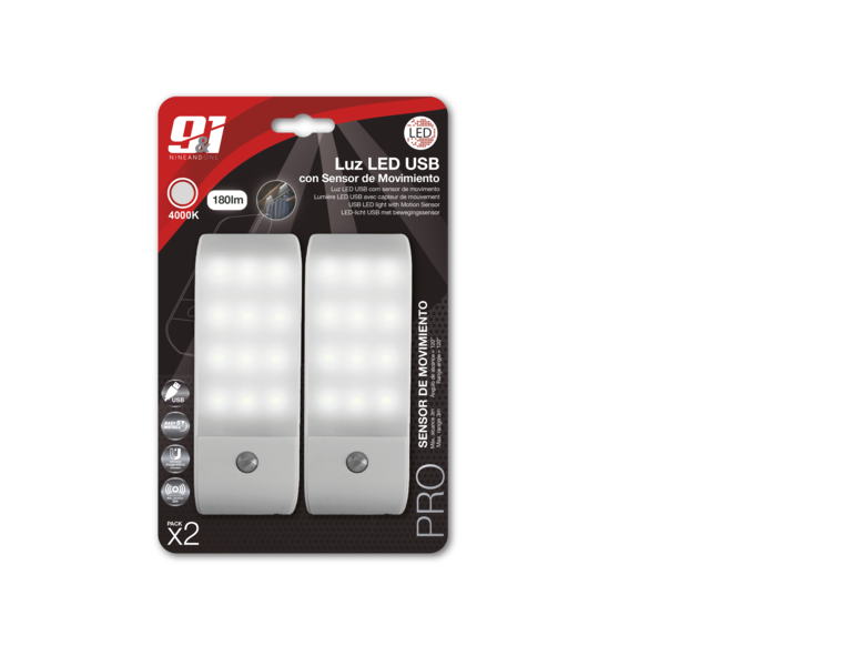 PACK 2 LUZ LED DE ARMARIO MAGNETICA 180LM CON SENSOR Y USB