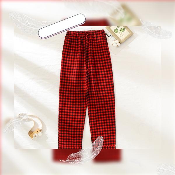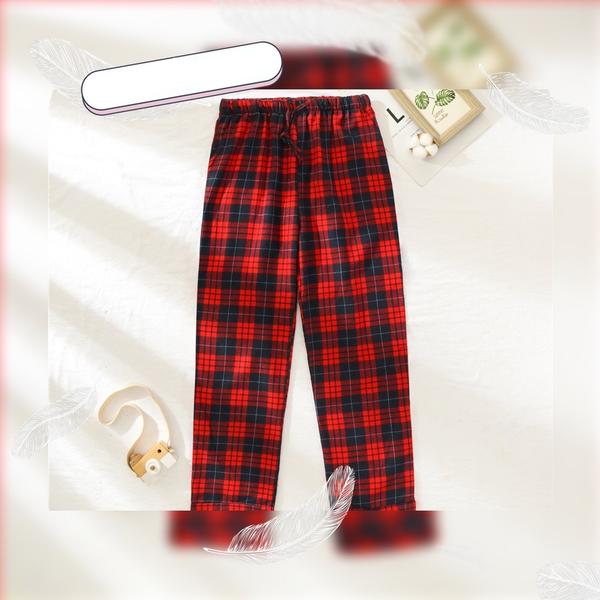 Pantalones largas de pijamas de algodón 100% con patrón cuadro navideño