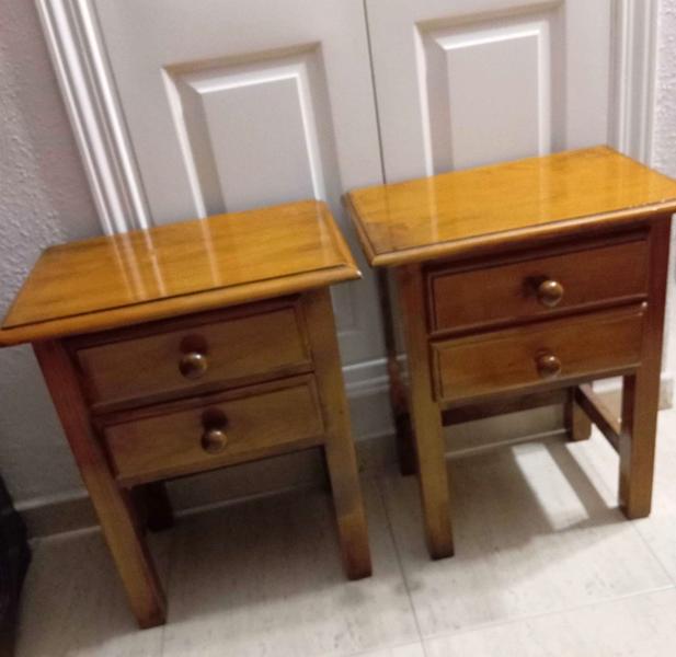 Pareja de mesitas de noche de madera maciza con 2 altavoces Sony de 60 vatios cada una