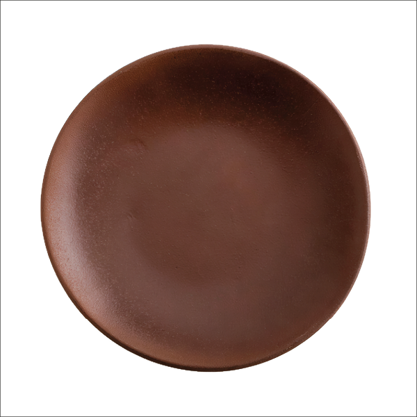 Plato churrasco de 25 cm de diámetro en color marrón, elaborado con material robusto y duradero, diseñado para presentar carnes y platos sustanciales en el sector horeca.