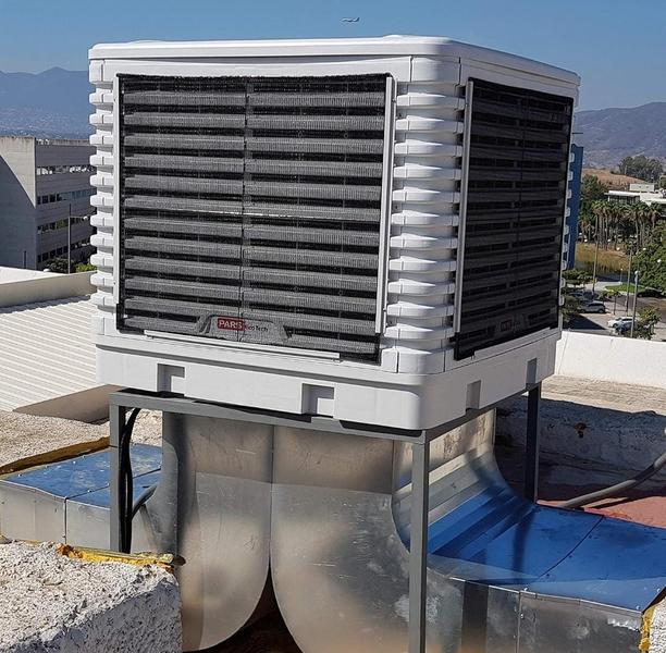 Climatizador evaporativo con flujo de aire de 30.000m3/h, Refrigera áreas de hasta 250m2. Para instalar sobre tejado y reparto de aire por conductos. Perfecto para naves industriales.