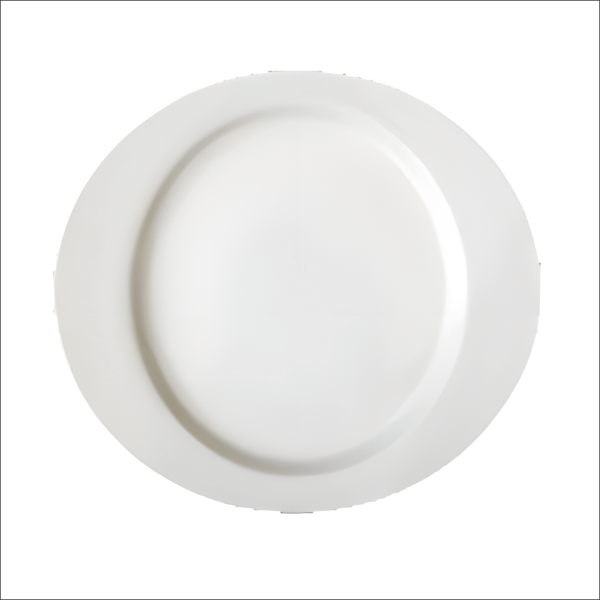 Fuente ovalada plana de 30 cm en color blanco, elaborada con material duradero, adecuada para servir y presentar alimentos con estilo y seguridad.