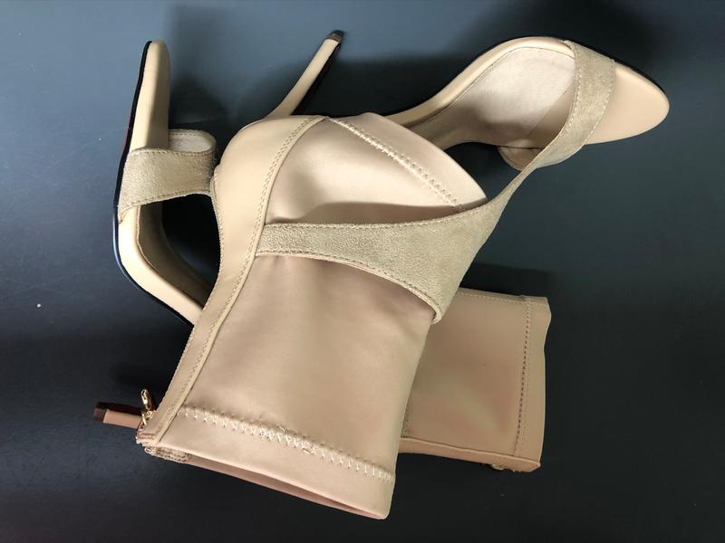Preciosa sandalia calcetín, diseño de pocas unidades con mucho detalle en beige y negro