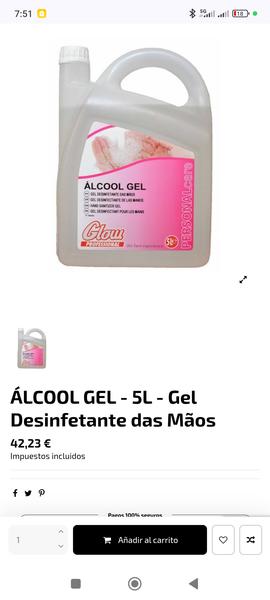 Lote en liquidación 6.912 garrafas Gel desinfectante para manos en garrafas de 5 litros. Apto en la limpieza de materiales que pueden ser tratados con disoluciones hidro-alcohólicas. 70 % de alcohol. Marca Glow. Fabricado en Portugal. Cada palet lleva 144 garrafas de 5 litros en cajas de 3. Precio en tienda 42 euros garrafa. Nuestro precio 0,85 euros garrafa. Venta minimo 1 palet, Precio para todo 0,79 euros. Stock total 48 palets. Disponible para ver, pagar y cargar en nuestro almacen en Alicante.