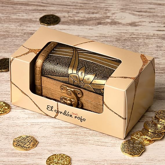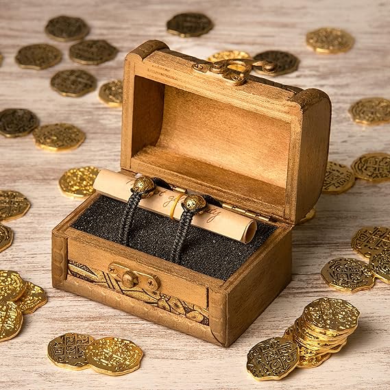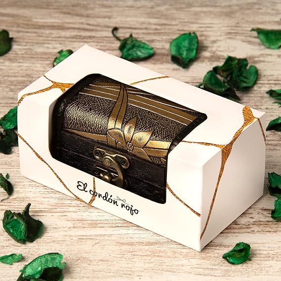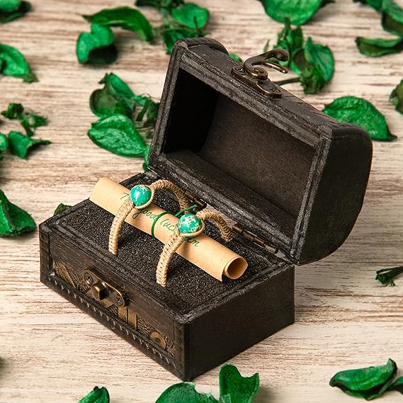 Lote de 9500 cofres de madera con 2 pulseras de piedras semipreciosas y pergamino con leyenda. El cofre de madera se puede utilizar como joyero para las pulseras o como decoración para el hogar. Dos modelos en color oro y negro. Medidas de cofre 10x7x7 cm. Precio en Amazon 29 euros, nuestro precio 1,25 euros unidad. Venta minima 300 unidades, disponible para ver, pagar y cargar en nuestro almacen en Alicante